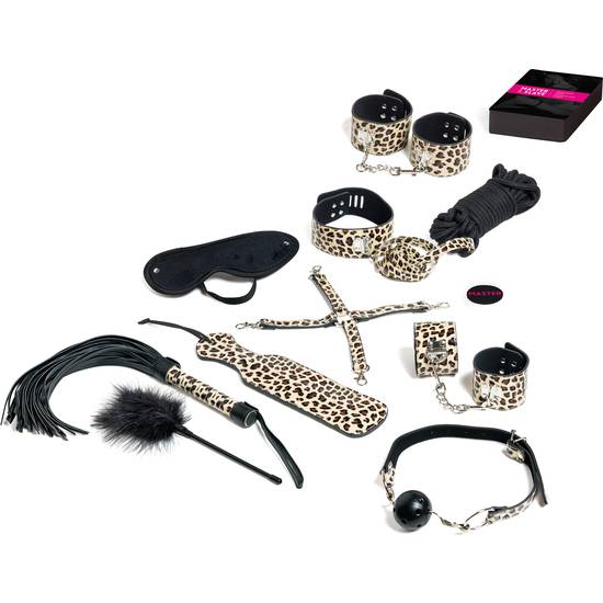 Cada caja contiene todos los artículos que necesitarás, como un látigo, una mordaza, una paleta, una venda para los ojos, un collar, un estimulador de plumas, un juego de esposas, un juego de puños, una hogtie, una cuerda de bondage y un cinturón. El juego también incluye 24 cartas con instrucciones claras en 10 idiomas: holandés, inglés, alemán, francés, español, italiano, sueco, nórdico, polaco y ruso.