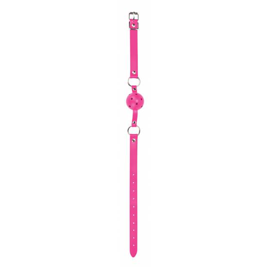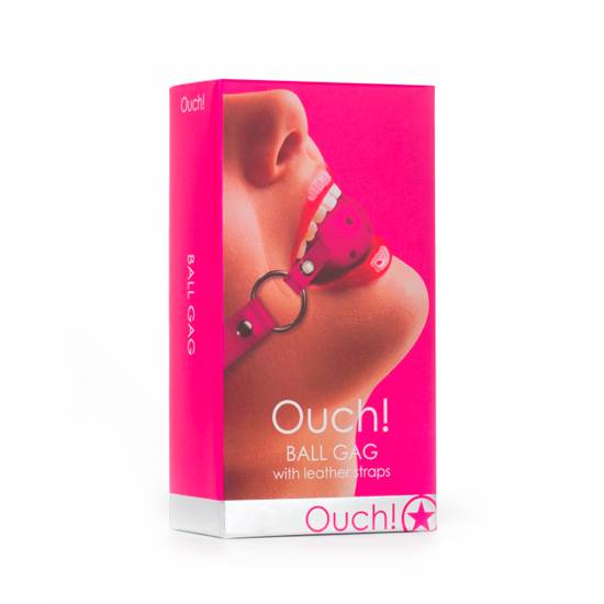 Esta mordaza tiene correas de cuero de calidad y cuenta con unas elegantes costuras a lo largo de las correas. La correa tiene diez orificios para ajustar la longitud. Talla única para todas las medidas. Usa este juguete solo o en combinación con otros productos Ouch!.