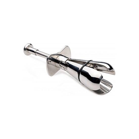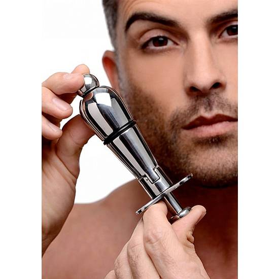 Mientras está cerrado, empuja el enchufe liso y duro en su agujero. Después de que esté completamente insertado, tira hacia atrás del vástago que sobresale de la base. Los tres dientes dentro de su juguete florecerán, estirando su culo abierto. Una vez que el vástago se ha retraído lo suficiente como para exponer un orificio a través de él, desliza el seguro hacia adentro para mantener el plug abierto.