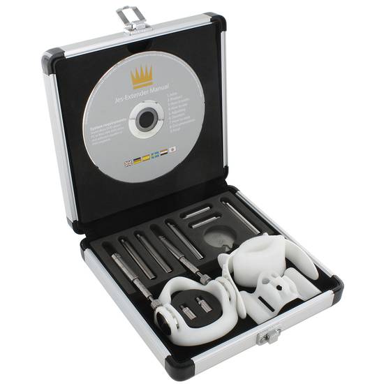 Se coloca un anillo de plástico especialmente diseñado alrededor de la base del pene. Un sujetador de plástico y silicona se ajusta alrededor de la cabeza del pene. Entre el anillo y el sujetador, dos barras dinámicas de metal aplican una tensión que oscila entre los 600 y los 1.500 gramos. El usuario regula la tensión. El JES-EXTENDER se adapta a todas las personas y a penes de cualquier tamaño.