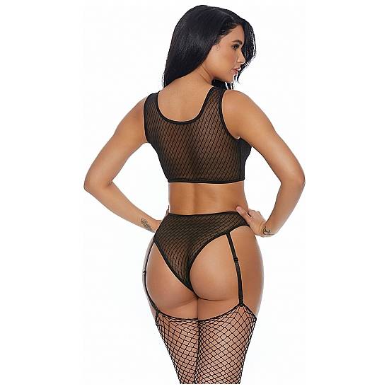 YOU A VIXEN BRA AND PANTY WITH GARTER STRAPS BLACK